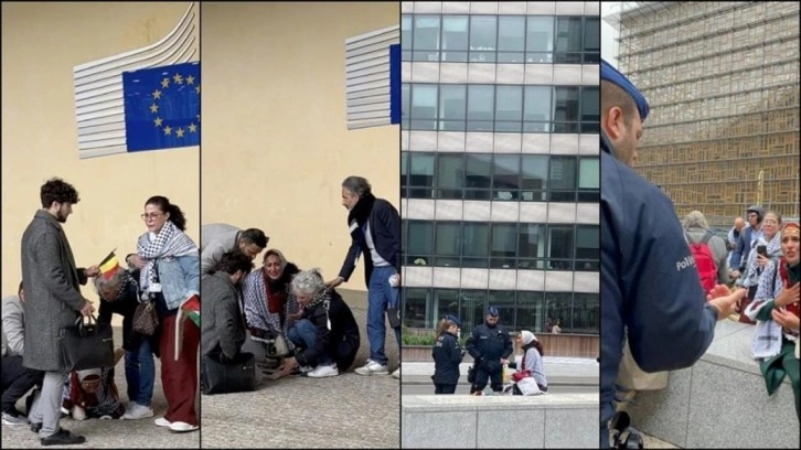 Avrupa Birliği (AB) Komisyonu önünde Arap asıllı genç bir kadın, Avrupa'nın soykırıma suç ortaklığı ettiğini haykırarak Gazze için ağıt yaktı.