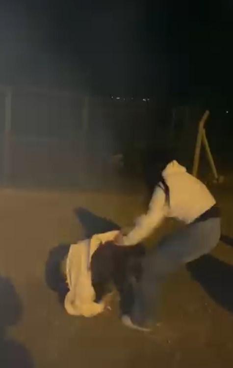 Kızlardan biri, saçlarından tutup yere yatırdığı arkadaşını 'Arkamdan iş çevirdin' diyerek tokat ve yumruklarla darbetti, diğeri de defalarca tekme attı. Bu sırada kızların yanındaki diğer arkadaşları da bu anları cep telefonuyla görüntüledi.
