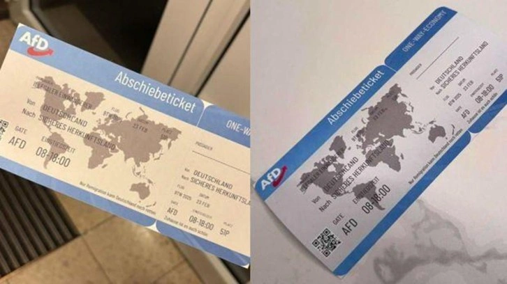 Aşırı sağcı Almanya için Alternatif Partisi (AfD), seçim kampanyası çerçevesinde vatandaşların evlerine tek yön uçak bileti şeklinde el ilanı gönderdi.