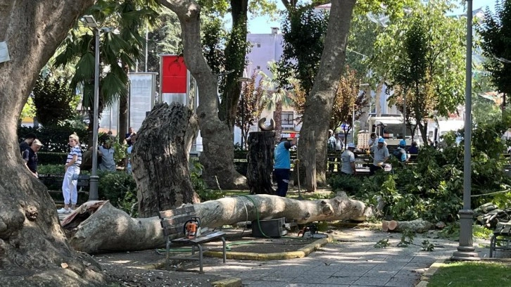 Değirmendere Yalı Mahallesi'ndeki Çınarlık Meydanı’ndaki çınar ağacından kopan büyük dal, 3 kişinin üzerine düştü.