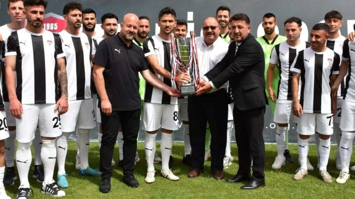 Törende Manisaspor’un şampiyonluk kupası, Manisa Amatör Spor Kulüpleri Federasyonu (ASKF) Başkanı Erol Timur tarafından takım kaptanına takdim edildi.