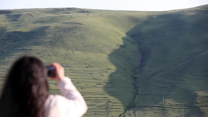 Havanın güneşli olması dolayısıyla dağ eteğinin yanındaki tepenin gölgesinin düşmesiyle oluşan Atatürk silüeti bu yıl da belirmeye başladı.