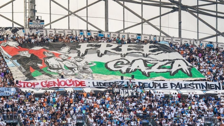 Fransa Ligue 1'in 2. haftasında Velodrome Stadı'nda Paris FC'yi konuk eden ve maçtan 5-2'lik galibiyetle ayrılan Olimpik Marsilya'da taraftarlar Özgür Gazze (Free Gaza) yazılı dev bir pankart açarak tepkilerini ortaya koydu.