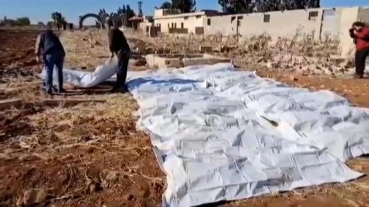 Üst üste defnedilen cesetler için açılan uzun ve derin çukurların yer aldığı görüntülerde, hapishane kodları ve ölen kişilerin isimlerinin yazılı olduğu sanılan çuvallar dikkati çekiyordu.