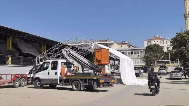 Yarın düzenlenecek Küçükbaş Hayvan Festivali'ne katılacak olan firmanın çalışanı Hüseyin Ö., pazar girişindeki alana firmasına ait branda kurmak istedi.