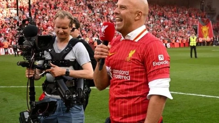 Maçın ardından Liverpool Teknik Direktörü Arne Slot, orta alanda mikrofonla konuşma yaptı.