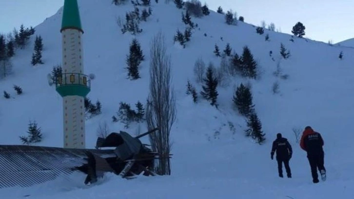Dağdan kopan kar kütlesi köy camisi ve cami lojmanının üzerini kapattı.