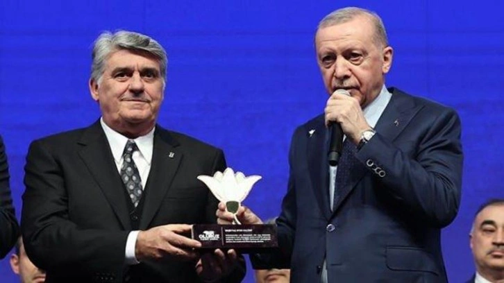 Cumhurbaşkanı Recep Tayyip Erdoğan, Beşiktaş Başkanı Serdal Adalı'ya programda plaket verdi.
