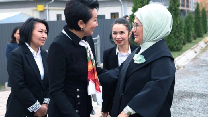 Resmi temaslarda bulunmak üzere Kırgızistan'ın başkenti Bişkek'e giden Cumhurbaşkanı Recep Tayyip Erdoğan'a eşlik eden Emine Erdoğan'ı, Kırgızistan Cumhurbaşkanı Sadır Caparov'un eşi Aygül Caparova sarılarak samimi bir şekilde karşıladı.