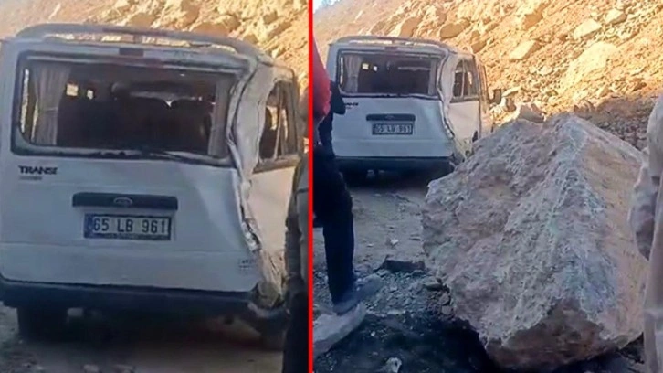Olay, Şemdinli le Derecik yolunda meydana geldi. Yol genişletme çalışması sırasında Sürücüsünün ismi öğrenilemeyen ve içerisinde 5 kişinin bulunduğu 65 LB 961 plakalı minibüs, Aylapınar köyüne bağlı Bınsurmevkinde üzerine dev kaya parçaları düştü.