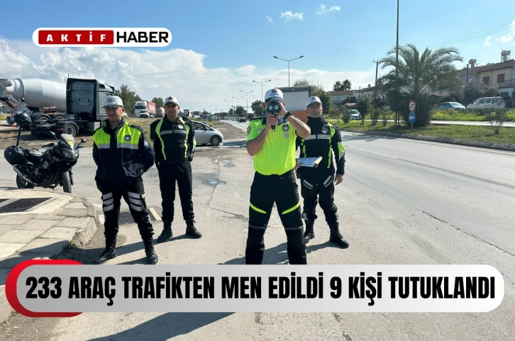 Aynı dönemde ülke genelindeki trafik denetimlerinde toplam 18 bin araç sürücüsü kontrol edilerek, suç işlediği tespit edilen 3 bin 242 sürücü rapor edildi ve aleyhlerinde yasal işlem başlatıldı. 233 araç trafikten men edilirken, 9 sürücü ise tutuklandı.