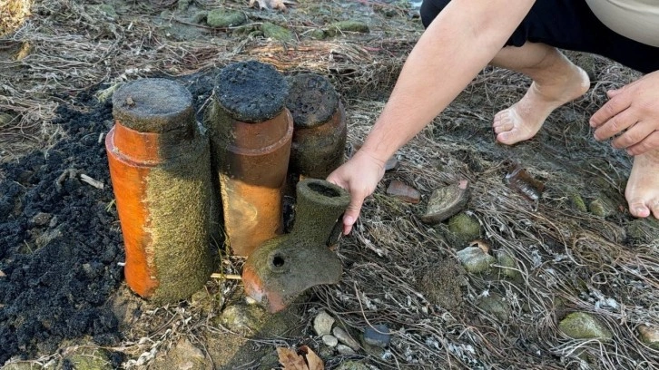 Polis ise ağzı kapalı olan üç küpü ve yanındaki tarihi kalıntıları müzeye teslim etti.