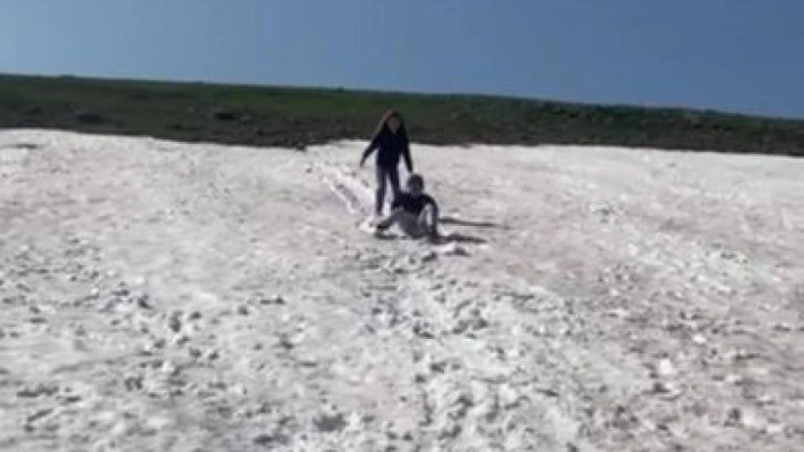 Çocukları ile birlikte karda kaymanın tadını çıkartan Kılıç, '' Haziran ayında karda kayıp sonrasında rengarenk çiçeklere kavuşmak çok güzel. Burası Ardahan merkeze bağlı 2100 rakımlı Çataldere Köyü Yaylası. Yaz ayında çocuklar kar keyfini yaşıyor. Bu onlar için çok güzel ve heyecanlı'' dedi.