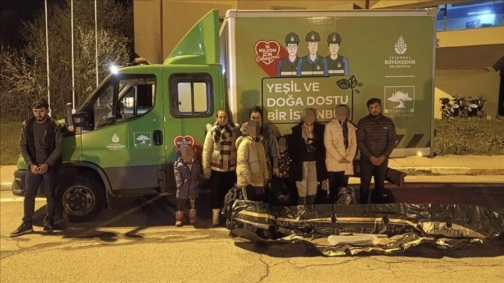 Kamyonette yapılan aramada, 5 Suriye ve 3 Irak uyruklu 8 düzensiz göçmen yakalandı, bir şişme bot ele geçirildi.