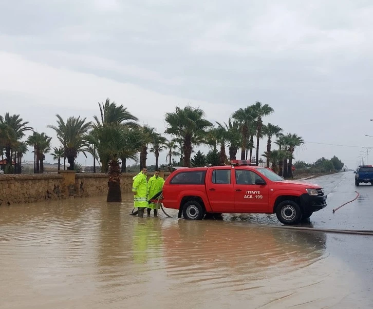 Girne İtfaiye Şubesi ise; 3 araç ve 10 personel ile toplam 7 noktada sel baskınlarına müdahalede etti.