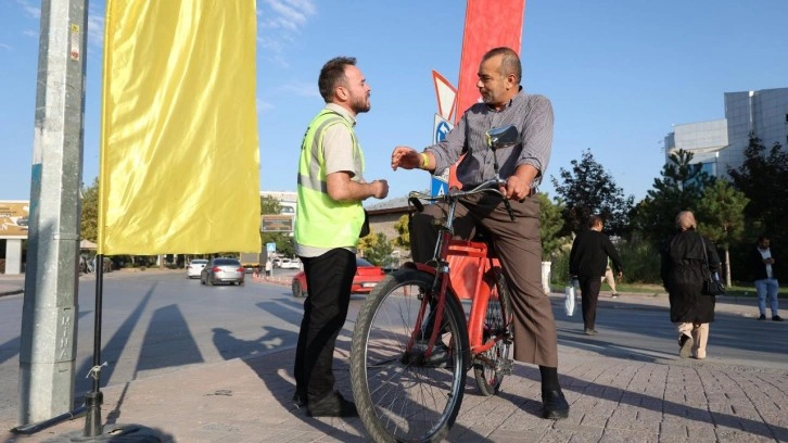 Türkiye’nin en uzun bisiklet yolu ağına sahip ve en fazla bisiklet kullanılan şehri olan Konya’da hafta kapsamında ilk olarak sabah saatlerinde bisiklet kullanıcılarına reflektörlü şerit dağıtımı gerçekleştirildi.