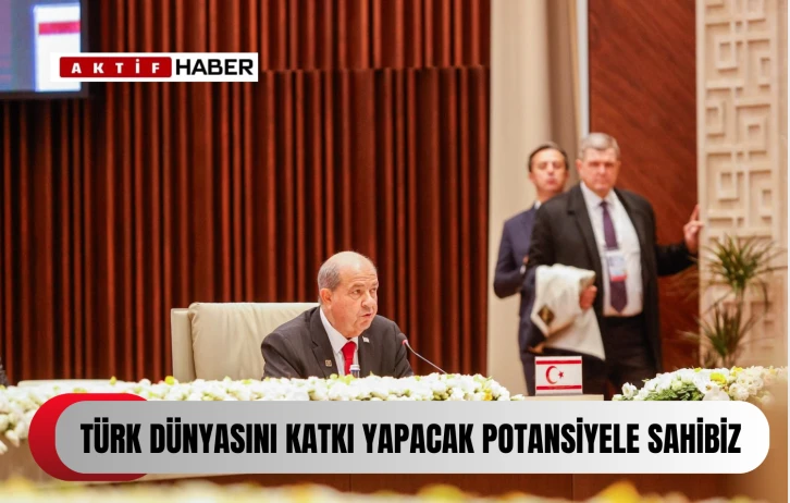 Kuzey Kıbrıs Türk Cumhuriyeti’nin sahip olduğu güç ve kapasiteyle Türk Dünyası’na katkı yapacak potansiyelde olduğunu anlatan Cumhurbaşkanı Tatar, Ercan Havaalanı ve Gazi Mağusa Ticaret Limanı’nın fırsatlar yarattığını aktardı.