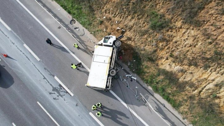 Çarpmanın etkisiyle kamyon refüje devrildi. Savrulan araç, bu sırada seyir halinde olan B.E. yönetimindeki tıra da çarptı. Tır kazadan ufak maddi hasarla kurtuldu.