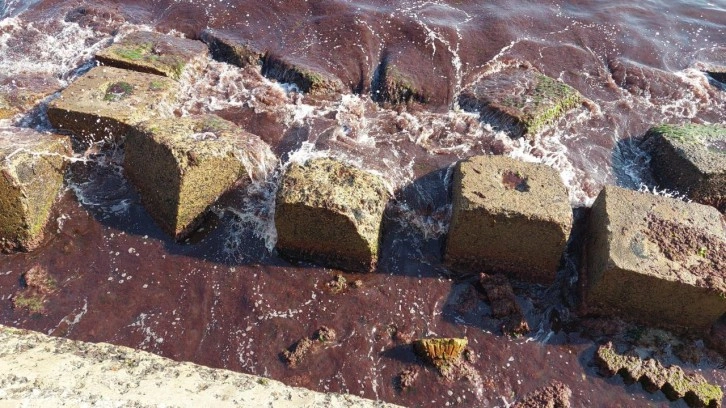 Sahili kaplayan bu yosunlar, yer yer denizin rengini kırmızıya boyadı.
