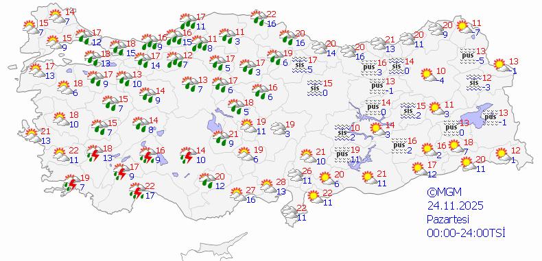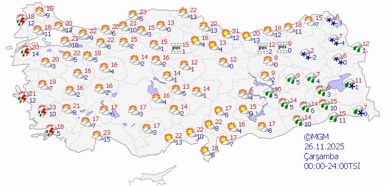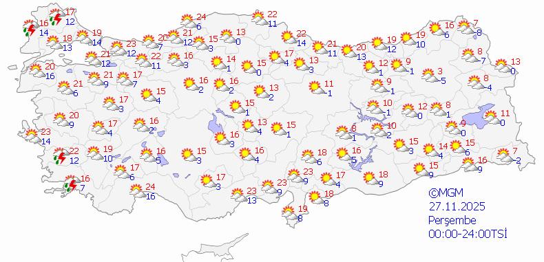 Özellikle iç ve batı kesimlerde hissedilen pastırma sıcakları bugün de sürecek. Ancak lodos etkisini kaybettikten sonra pazartesiden itibaren hava kış koşullarına dönecek.