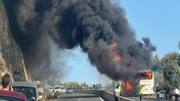 Muğla-Antalya kara yolunun Sakar Geçidi'nde yangını fark eden şoför, otobüsü durdurup, yolcuları indirdi. Alevler kısa sürede tüm otobüsü sardı. İhbarla bölgeye itfaiye, sağlık, polis ve jandarma ekipleri sevk edildi. İtfaiyecilerin müdahalesiyle alevler söndürüldü. Ölen ya da yaralananın olmadığı olayda, araçta hasar oluştu.