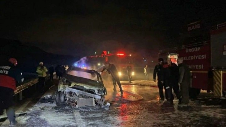 Otomobil ve motosikletteki yangın, Ürgüp Belediyesi itfaiye ekiplerince söndürüldü.