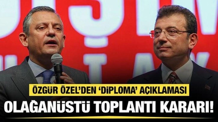 Üniversiteden yapılan açıklamaya göre, İmamoğlu'nun diploması iptal edildi. Cumhuriyet Halk Partisi Genel Başkanı Özgür Özel, konuya ilişkin ilk açıklamasını Cumhuriyet'e yaptı.
