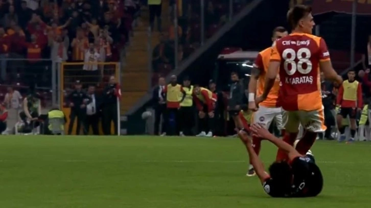 Mücadelenin 60. dakikadasında Galatasaray 2-1 öndeyken sarı- kırmızılılarda Abdülkerim Bardakcı'nın pasında topla buluşan Kazımcan Karataş, Thalisson'un müdahalesiyl yerde kaldı.