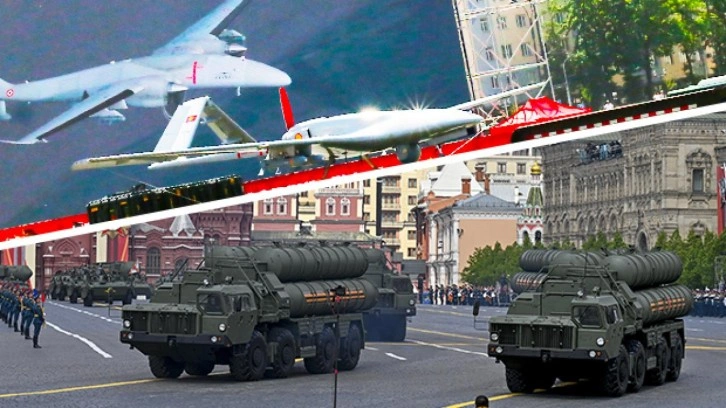 Türk Savunma Sanayi yapımı Bayraktar TB2 geçit töreninde fiziksel olarak sergilenirken; Aksungur ve Akıncı gibi SİHA'lar da Kızıl Meydan'da kurulan dev ekranda gösterildi.