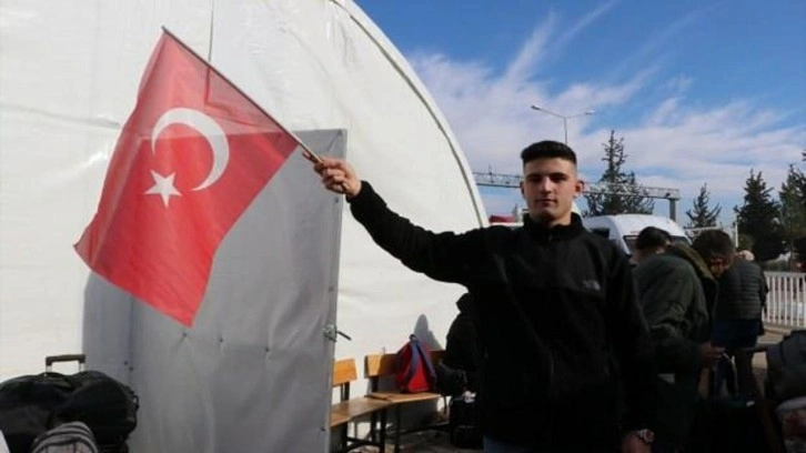 Ülkesine dönmek üzere Öncüpınar Gümrük Kapısı'na Türk bayrağıyla gelen Halepli Abdulkadir Alloughlaz (22), Türk halkını çok sevdiğini söyledi.