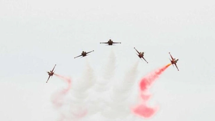 Türk Yıldızları, gösteri uçuşunda yaptığı akrobatik hareketlerle izleyenlere unutulmaz anlar yaşattı.