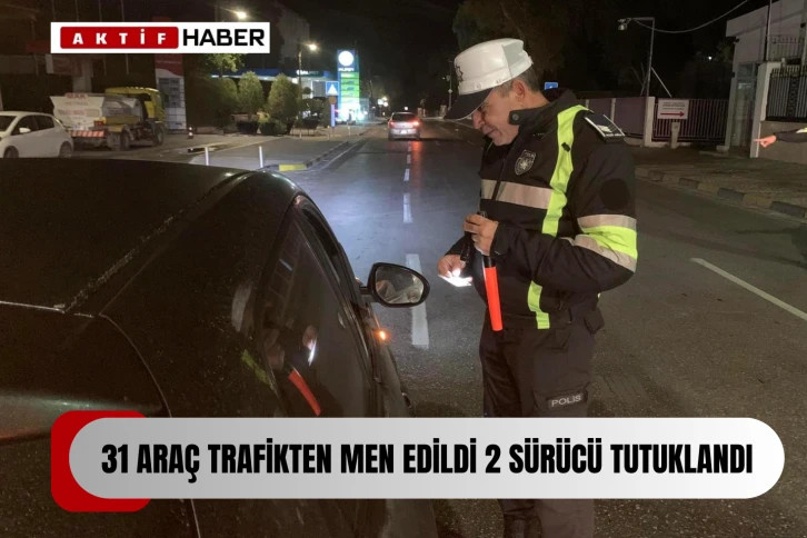 Polis Basın Bülteni’ne göre denetimlerde, 31 araç trafikten men edildi ve 2 sürücü tutuklandı.