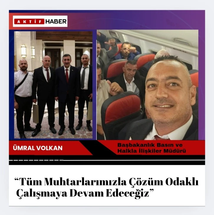 Başbakanlık Basın ve Halkla İlişkiler Müdürü Ümral Volkan, muhtarlarla birlikte gerçekleştirdikleri Ankara ziyareti dönüşünde sosyal medyadan açıklamada bulundu. Volkan, muhtarların ziyarette kendilerine gösterilen ilgi ve alakadan dolayı çok mutlu olduklarını belirtti.