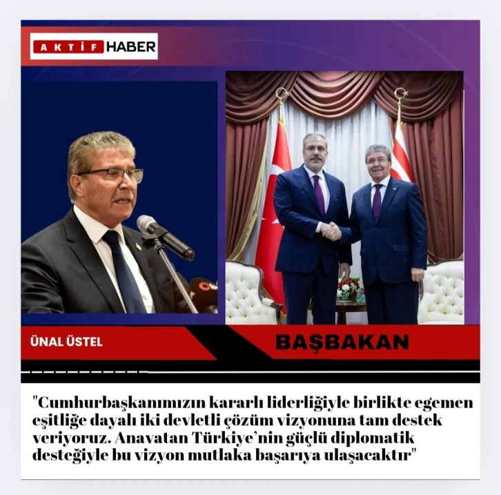 Başbakan Üstel, paylaşımında Bakan Fidan’ın “Kıbrıs’ta iki devlet vardır. Kıbrıs Türkleri Ada’nın eşit sahibidir, haksız izolasyonlar artık sona ermelidir” ifadelerini hatırlatarak, bu duruşun Kıbrıs Türk halkının haklı davasına verilen güçlü ve tereddütsüz bir destek olduğunu vurguladı.
