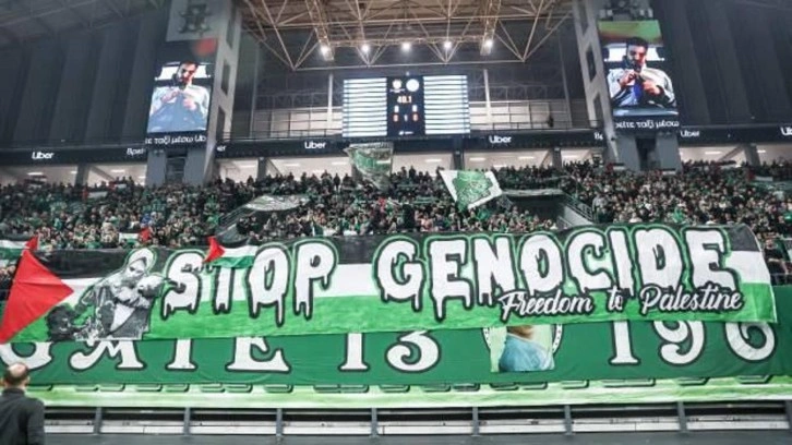 Öte yandan Panathinaikos taraftarlarının açtığı pankartta "Soykırımı durdurun" yazısı yer aldı.